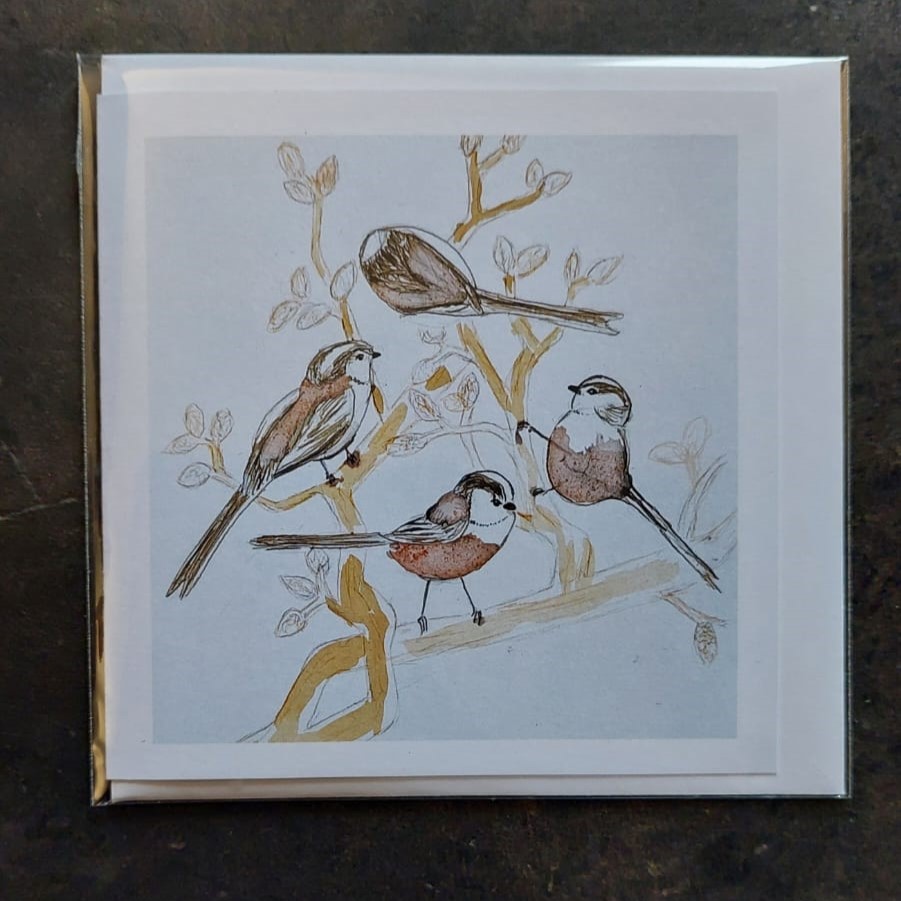 A selection of four cards featuring garden birds drawn in homemade botanical ink. Printed in Cornwall each with it own envelope Blank inside so you can write your own message Sleeping blue tit Blue tit with daffodil and cabbage ink Long tail Tit in oak gall and sloe ink wren in Hawthorn drawn in oak […]
